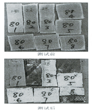 分析原因: 1號試件的敷膜層為改性PVC,與滌綸纖維之間的親和力要好于敷膜層為改性PE的試件;在開(kāi)放條件下四周熱水不規則地侵蝕質(zhì)量標準難統一的試件也是造成敷膜層與編織層剝離的因素;改性PE材料熱穩定性差,熱膨脹比大也是因素之一。