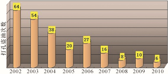 反打孔盜油工作首先體現在頂防和及時(shí)的發(fā)現情況。因此,確保管道巡線(xiàn)次數和巡線(xiàn)質(zhì)量,對管道保護工作至關(guān)重要。日前,管道公司所屬各輸油氣單位均雇傭了一定數量的農民巡線(xiàn)員負責管道巡線(xiàn),采取技術(shù)手段和加大考核力度控制巡線(xiàn)質(zhì)量,管道巡護工作取得了一定成效。在總結推廣部分單位對巡線(xiàn)人員有效管理經(jīng)驗的同時(shí),公司在打孔盜油嚴重地區和重點(diǎn)看護地段推廣電子巡檢系統,加強土地屬地看護機制,實(shí)現了管道巡查管理的智能化、屬地化和人性化。2011年4月14日,管道保護人員在甘肅省環(huán)縣甜水鎮發(fā)現可疑盜油分子,配合當地派出所在距離馬惠線(xiàn)129#樁附近200 m的一處民宅院內抓獲兩名盜油嫌疑人,現場(chǎng)繳獲東風(fēng)牌雙橋偽裝盜油車(chē)和桑塔納作案車(chē)各一輛。