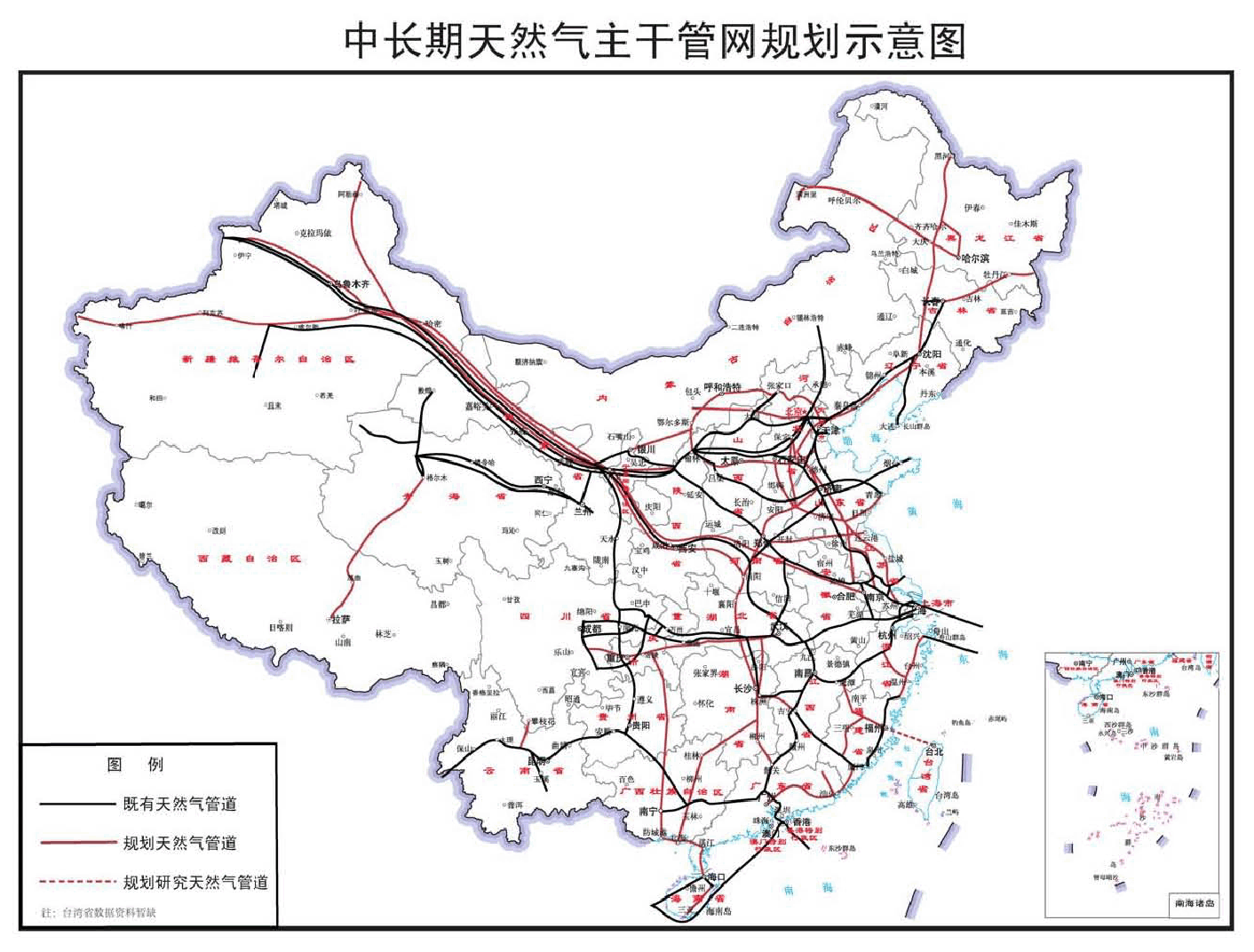 適應新型城鎮化建設中,天然氣需求廣泛分布、點(diǎn)多面廣、跨區調配等需要,加快啟動(dòng)新一輪天然氣管網(wǎng)設施建設。統籌考慮天然氣和LNG“兩個(gè)市場(chǎng)”、國內和國際“兩種資源’’、管道和海運“兩種方式’’,堅持“西氣東輸、北氣南下、海氣登陸”原則,加快建設天然氣管網(wǎng)。到2025年,逐步形成“主干互聯(lián)、區域成網(wǎng)”的全國天然氣基礎網(wǎng)絡(luò )。