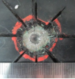 達到測試周期后,拆除電源,用濕布擦洗防腐層表面,觀(guān)察防腐層表面狀況,看是否出現新的漏點(diǎn)及漏點(diǎn)周?chē)栏瘜觿冸x情況,用刨刃在防腐層表面做出米字型的切口,以人為孔為中心,確保防腐層被完全切透至鋼材表面,用尖刀嘗試挑起防腐層,并拍照記錄防腐層被挑起的情況。以缺陷孔中心為起點(diǎn),測量并記錄各個(gè)方向上的剝離距離。
