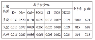 現場(chǎng)選取農田、沙漠和戈壁三種西部典型的土壤進(jìn)行理化性能測試,離子含量、土壤浸出液電導率和pH如表1所示。從表中可以看出,三種土壤中的離子含量和電導率差別較大,其中沙漠遠高于戈壁和農田;三種土壤的pH略有差別,沙漠為6.24 相對偏酸性,戈壁和農田接近中性。實(shí)驗時(shí)根據測試結果配置模擬溶液。