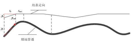 (2)缺陷參考特征(通常為臨近的水平彎頭)與缺陷位置之間的埋深調查間隔以?xún)葯z測報告的管節長(cháng)度為依據,一般不大于12米,且冷彎彎管位置或地形起伏較大的區域應進(jìn)行加密測量。