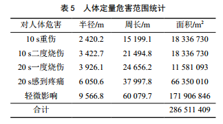 該爆炸事故對建筑物定量危害范圍如表 4所示。