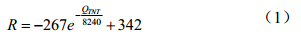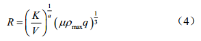 式中: R 為管道與民用炸藥儲存倉庫的最小水平距離, m; e 為常數,取2.718; Q 為炸藥庫容量,kg, 1 000 kg≤Q ≤10 000 kg。