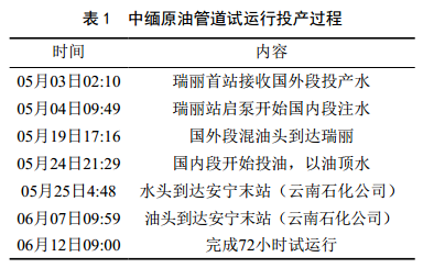 1 中緬原油管道特點(diǎn)和投產(chǎn)過(guò)程