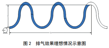 運行中管道排氣效果往往不是理想狀態(tài),經(jīng)常在管道的高點(diǎn)集氣,多重起伏的管道會(huì )在各個(gè)高點(diǎn)上形成氣袋,導致計算得出的摩擦阻力會(huì )大于理論摩擦阻力,氣體積存的越多,實(shí)際摩擦阻力越大,如圖 3和方程(2)所示。
