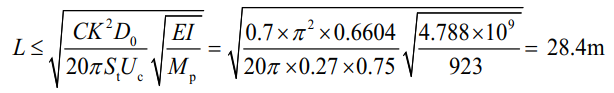 (3)實(shí)際工程中,建議采用較為保守的最大允許跨長(cháng)值,即臨界跨長(cháng)28.4 m。目前SZ36-1CEP至綏中終端海底懸跨管道懸跨長(cháng)度為20 m,處于安全狀態(tài)。