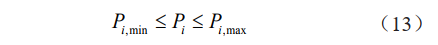 式中,Pi為第 i 個(gè)節點(diǎn)的壓力,MPa;Pi,min和Pi,max分別為第i個(gè)節點(diǎn)壓力的上下限,MPa。