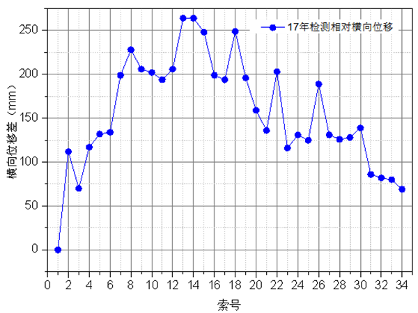 圖 4 主梁橫向偏位檢測值與識別值對比