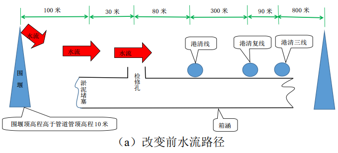 天津市為進(jìn)一步改善海河水環(huán)境質(zhì)量,避免獨流減河及濕地直接與海河支流洪泥河接觸,于2021年5月實(shí)施獨流減河倒虹吸工程。該工程與港清線(xiàn)、港清復線(xiàn)和港清三線(xiàn)天然氣管道在獨流減河內交叉。管道保護工程采取全斷面開(kāi)挖方式橫跨獨流減河及其濕地建設箱涵,交叉處管道采用鋼管樁為基礎的跨越支撐桁架保護。7月27日,3條管道正上方主體箱涵已經(jīng)基本完工,檢修孔處于綁扎鋼筋階段。當日,因接到上游向獨流減河水域泄洪通知,管道單位與建設方、施工方召開(kāi)緊急會(huì )議,商討確定交叉工程現場(chǎng)管道保護方案,避免暴露在外的天然氣管道遭受破壞。