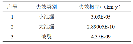 管道小泄漏:PSL=PCSL;管道大泄漏:PLL=PTLL+PCLL;管道破裂:PRU=PTRU+PCRU+PNRU。