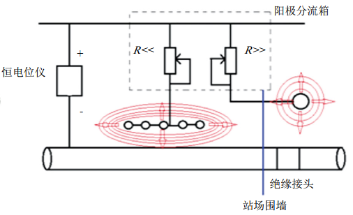 (3)對措施實(shí)施后仍然不滿(mǎn)足要求的個(gè)別欠保護點(diǎn)通過(guò)現有的陰極分流箱采取均壓跨接等方式進(jìn)行調節保護。