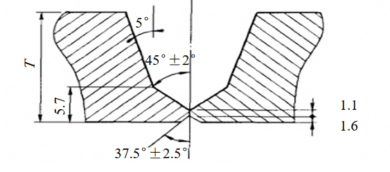 圖 1 中俄東線(xiàn)1219 mm管道CRC坡口示意圖(壁厚18.4 mm)