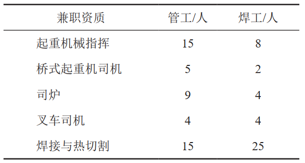 表 1 維搶修隊伍管工、焊工兼職情況統計表