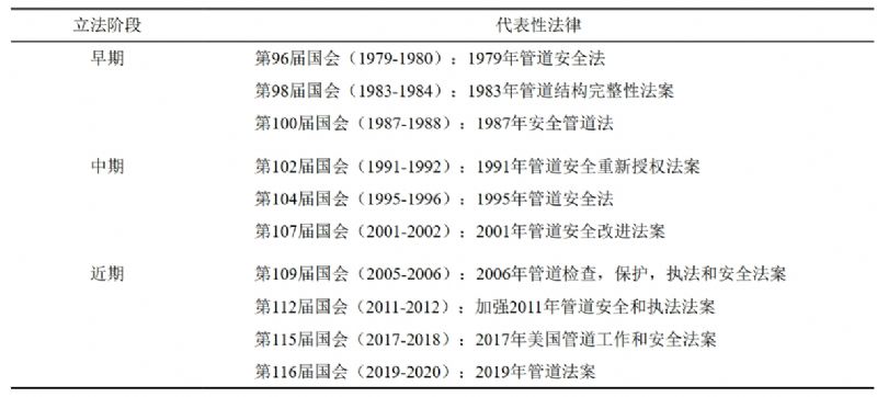 美國、加拿大以及歐洲等油氣管道業(yè)發(fā)達國家,管道安全的立法與監管起步較早,經(jīng)過(guò)長(cháng)期探索實(shí)踐,已建立起多層次、嚴密細致的油氣管道安全保障的法律法規體系,積累了較為豐富的監管經(jīng)驗。通過(guò)對國外油氣管道安全立法進(jìn)程與監管體系的回顧,分析了美國管道安全立法的階段性特點(diǎn),深入研究美國油氣管道安全立法與監管的經(jīng)驗,總結值得我國借鑒的先進(jìn)做法,探索適合我國國情的安全監管模式,提高我國油氣管道本質(zhì)安全水平,保障油氣管道行業(yè)持續高水平發(fā)展。