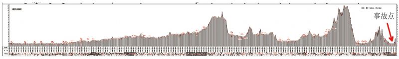 (3)洋河截斷閥關(guān)閉之后的自流泄漏。此階段有兩個(gè)過(guò)程,首先是管內原油液位高度從高點(diǎn)2降到高點(diǎn)4,此過(guò)程管內壓力不足上階段的一半,在泄漏的同時(shí)仍有部分原油可以回流到黃島油庫;當原油液位降到高點(diǎn)4的高度以后,高點(diǎn)4到高點(diǎn)5的“U”形管段長(cháng)6.5 km,減掉約1 km低洼段,剩余管容內的原油完全從事故點(diǎn)漏空。發(fā)生爆炸后,暗渠內事故管道被炸扁足以證實(shí)這個(gè)說(shuō)法(圖 10)。此階段管道內壓低、泄漏速度小,但是時(shí)間長(cháng)、管段長(cháng),泄漏量最大。