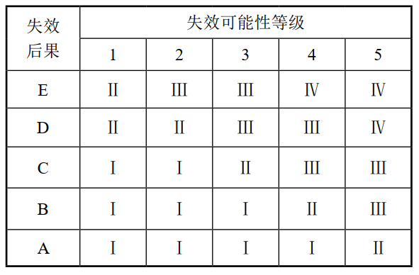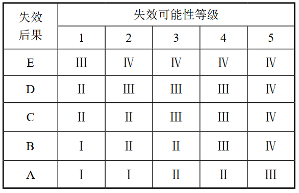 GB 32167附錄E,給出了典型的風(fēng)險矩陣和評價(jià)等級,如表 1、表 2、表 3所示。