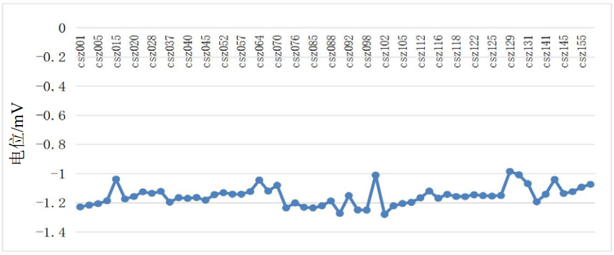 圖 1 某原油長(cháng)輸管線(xiàn)電位曲線(xiàn)圖