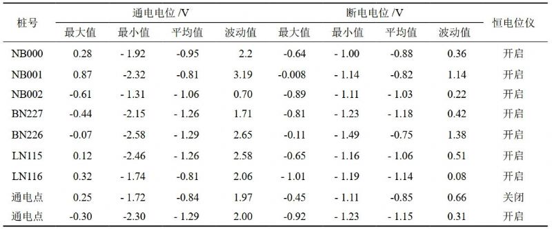 南寧站管線(xiàn)異常點(diǎn)直流干擾測試數據見(jiàn)表 2。
