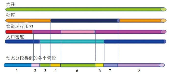 (1)數據采集與分段。軟件能夠根據錄入的數據實(shí)現自動(dòng)分段,按照一個(gè)屬性值變化即劃分一個(gè)新管段的原則,將管道劃分為多段(圖 2)。以管段為評價(jià)單元開(kāi)展評價(jià)工作,每個(gè)管段都會(huì )計算得到一個(gè)風(fēng)險值,根據風(fēng)險值對各個(gè)管段風(fēng)險進(jìn)行排序。根據分段方法,軟件將A管道全線(xiàn)劃分為946段,并逐段進(jìn)行了風(fēng)險計算。