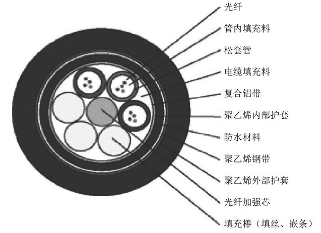 光纖自身的材質(zhì)及其內部結構(圖 1)從根本上決定了光纖傳輸過(guò)程中信號的衰減程度。不同材質(zhì)、不同加工等級的光纖在信號衰減方面的差異是顯而易見(jiàn)的。比如,使用石英玻璃制成的光纖,由于石英玻璃中混有少量雜質(zhì),這些雜質(zhì)也會(huì )嚴重影響光纖的光折射率,加劇了光信號的衰減速率,進(jìn)而影響數據傳輸[1]。另外光纖當中羥基類(lèi)的雜質(zhì)也會(huì )造成信號傳輸損耗嚴重。在油氣管道敷設的過(guò)程中,很難將水分徹底排除,水分進(jìn)入光纖材料中也會(huì )造成信號衰減。