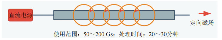 (3)優(yōu)缺點(diǎn)。其優(yōu)點(diǎn)是設備成熟,安全性高,操作簡(jiǎn)便;缺點(diǎn)是消磁能力有限,對高強度磁區作用效果不明顯。