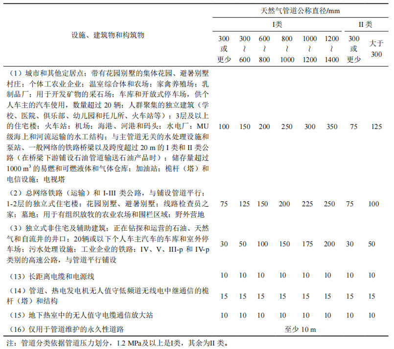 我國管道設計標準GB 50251―2015《輸氣管道工程設計規范》和GB 50253―2014《輸油管道工程設計規范》中規定管道兩側5 m不能有建構筑物,與烏國標準所規定的控制距離差別較大。