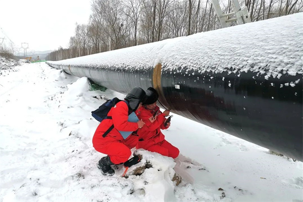 面對復雜多變的施工環(huán)境,國家管網(wǎng)集團堅持高標準加強全過(guò)程施工管理,利用自主研發(fā)的工程項目管理系統,依托“工業(yè)互聯(lián)網(wǎng)+安全生產(chǎn)”技術(shù),通過(guò)作業(yè)面智能監控、無(wú)人機飛行直播、人員實(shí)時(shí)視頻監視,實(shí)現對施工過(guò)程的全面監控和管理。在丘陵地區,針對連續起伏、坡度變化頻繁的復雜地形,虎林—長(cháng)春管道試驗使用柔性?xún)群笝C,可在坡度變化25度范圍內的管道內上下爬坡、安全駐停,相較于傳統內焊機,能夠有效減少焊接斷點(diǎn),實(shí)現連續自動(dòng)化焊接作業(yè),提高施工效率和安全性。在平原地區,通過(guò)規;瘧18米加長(cháng)鋼管,減少線(xiàn)路段焊口7360道,有效縮短管道安裝周期,提升管道本質(zhì)安全,打造平安管道。
