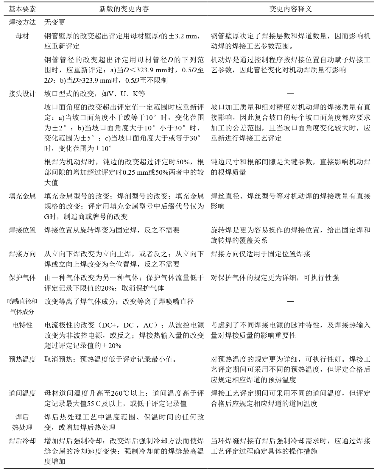 表 3 2023版標準中手工焊和半自動(dòng)焊焊接工藝評定基本要素的變化